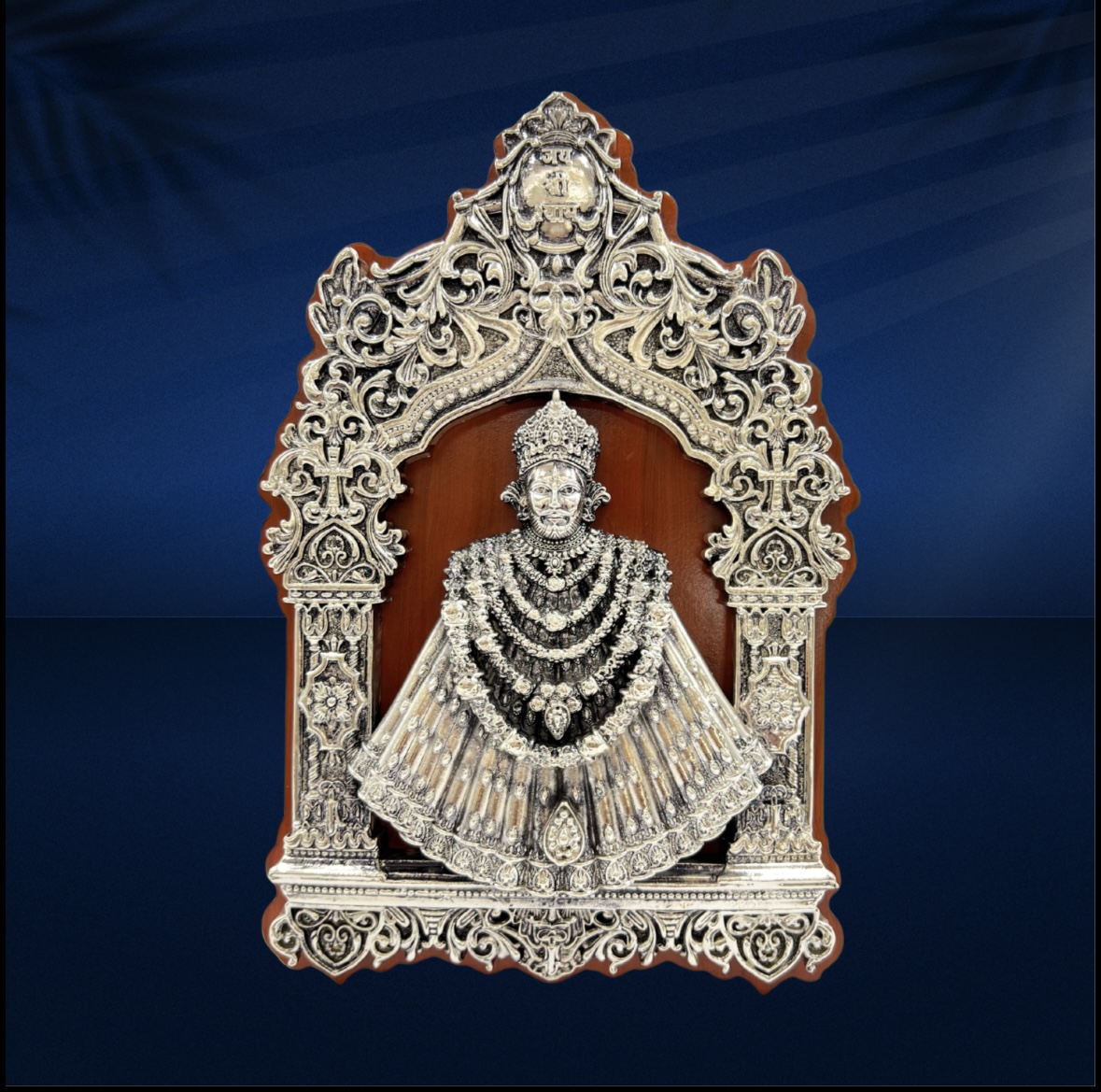 Invite divine blessings into your space with this beautifully crafted Shyam Baba Idol, made from 999 pure silver. Designed with intricate detailing, the idol reflects the divine grace and spiritual aura of Khatu Shyam Baba, a symbol of faith, devotion, and protection. With dimensions of 12.5 × 9.5 inches, this elegant piece is perfect for home temples, prayer rooms, or as a sacred decorative accent. The brilliance and purity of 999 silver enhance its timeless appeal, making it ideal for festive occasions, spiritual gatherings, and meaningful gifting. A divine creation that brings peace, devotion, and positive energy to any space. ✨🙏