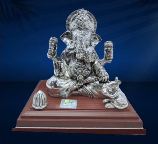 Invite divine blessings and prosperity into your home with this beautifully crafted Lord Ganesha Idol with Mouse, made from 999 pure silver.